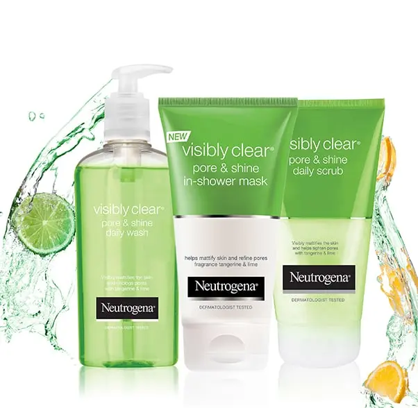 Neutrogena Visibly Clear® Pore & Shine -sarja on kehitetty erityisesti rasvoittuvan ihon tarpeisiin. Tuotteiden raikkaassa sitrustuoksussa yhdistyvät lime ja mandariini.